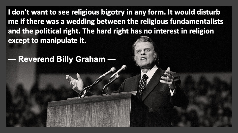 Lots of problems get solved when that is your ethos. It is the heart of Christ for people. Generally speaking, NO political party has the heart of Christ for people, and Christians are fooling themselves by pretending that either major party is doing God’s work. Political parties exist to secure and manipulate voting blocks, which is why Billy Graham warned evangelicals in the late 20th century to avoid the Religious Right.
