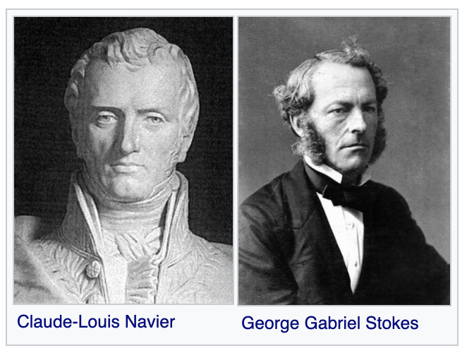 - Navier-Stokes Equations (the 3D partial differential equation version of Stoke’s Law)